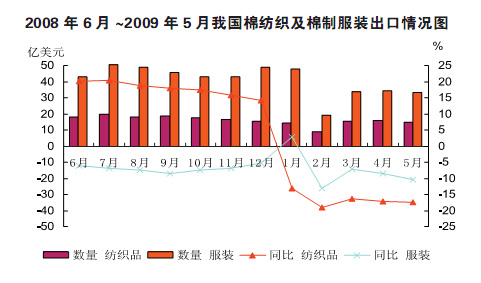 2009年1~5月份,受国家利好政策的影响,我国棉纺织行业投资大幅回升,产量增幅也略有增长,但出口市场仍然在萎缩。国内市场原料大幅上涨,但对纱布市场的传导作用还未显现,利润持续下降,降幅趋缓,利润率上升,全部从业人员减少的幅度逐步增大。