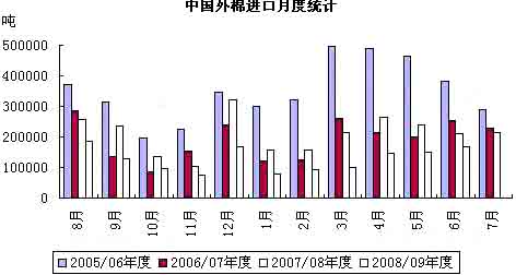 在最近几个年度的进口贸易中,特别是从06年开始,中国纺织厂或者贸易商直接通过买保税寄售棉的方式成为中国购买棉花的一个新的特点,其他国家暂时未出现这么大的规模,外商也没有花这么大的力度。