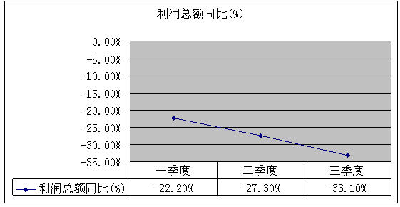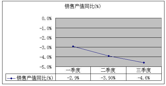 总体上随着国际政治经济环境的变化,世界以及中国经济都进入深度调整和转型时期,今年总体上全国纺织行业经济下行压力加大,内需市场的增长也开始减速,再加上纺织原材料价格波动明显,国内外棉价倒挂问题凸显,劳动力、能源等要素成本持续上涨,企业效益下滑,亏损企业增多,投资增速明显回落。三季度单季收入和净利润增速持续放缓。终端消费低迷的状况没有得到明显改善,行业延续了上半年整体增长乏力的趋势,但初步出现了趋稳的迹象。