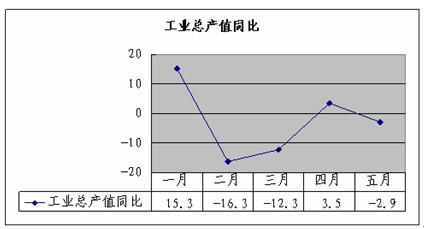 图2:2013年1-5月上海纺织工业总产值同比(%)