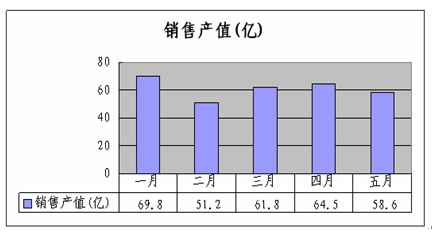 生产方面。根据市统计局公布的数据,2013年1-5月上海纺织规模以上工业企业实现工业总产值(现价)307亿元,同比下降1.1%。工业总产值(可比价)308.7亿元,同比下降0.7%。逐月分析一季度呈现出先大幅上杨后急速下降的状态,4月份起开始走向平稳。 1月份实现工业总产值75亿,同比上升15.3%,2月份完成50.9亿,同比下降16.3%,3月完成60.7亿,同比下降12.3%,4月份完成63亿,去年同期61亿,同比上升3.5%,5月份完成57.8亿.去年同期59.5亿,同比下降2.9%。(图1、图2)。