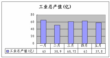 图1:2013年1-5月上海纺织工业现价产值(亿)