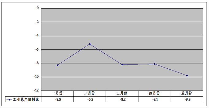 生产方面。逐月分析1月份同比下降8.3%,2月份同比下降5.2%,3月份同比下降8.2%,4月份同比下降10.1%,5月份同比下降9.8。见(图1、图2)。